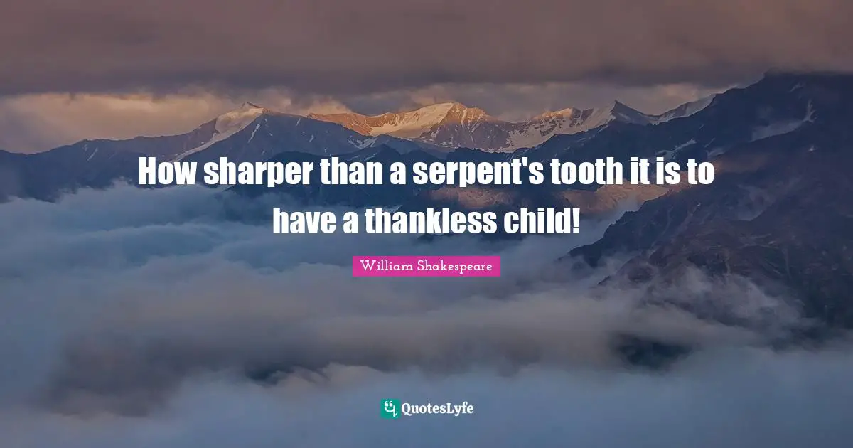 "King Lear "How sharper than a serpent's tooth it is, to have a. Quick answer: The phrase "Sharper than a serpent's tooth is an ungrateful child" in King Lear reflects Lear's anguish over his daughter Goneril's ingratitude William Shakespeare — 'How sharper than a serpent's tooth it is To have a thankless child!'
